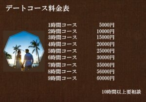 ※デートコースを利用される場合、デート代のご負担をお願い致します。